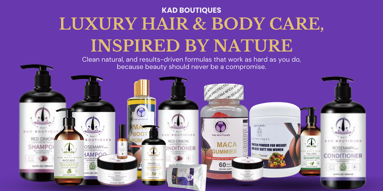 At KAD Boutiques, we believe beauty is more than what’s seen, it’s how you feel from within. Our mission is to create timeless self-care essentials that nourish, strengthen, and empower you every day.